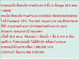 ขายคอนโด ดีคอนโด รามคำแหง 9 ชั้น 8 ห้องมุม 29.5 ตรม 1.99MB