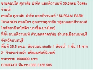 ขายคอนโด ศุภาลัย ปาร์ค แยกติวานนท์ 35.5ตรม วิวสระว่ายน้ำ 1.9MB