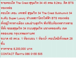 | ยี่ห้อ: | The Crest Sukhumvit 34 | รุ่น: | The Crest Sukhumvit 34 |