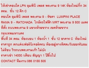 ให้เช่าคอนโด LPN ลุมพินี เพลส พระราม 9 14K ห้องใหม่กิ๊ก 34 ตรม. ชั้น 12 ตึก C / ให้เช่าคอนโด LPN ลุมพินี เพลส พระราม 9 14K ห้องใหม
