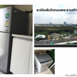 พื้นที่ 34 ตรม. ห้องนอน 1 ห้องน้ำ 1 ชั้น 12 อาคาร C ห้องใหม่ ราคาถูก ตกแต่งเฟอร์นิเจอร์ครบ ห้องอยู่ทางทิศตะวันออกรับลม ไม่ร้อน วิวถนนพระรามเก้า ไม่บัง