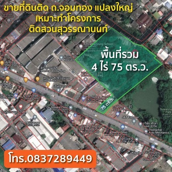 ขายที่ดิน ติดถนนจอมทอง แปลงใหญ่ เหมาะทำโครงการ ติดสวนสุวรรณานนท์