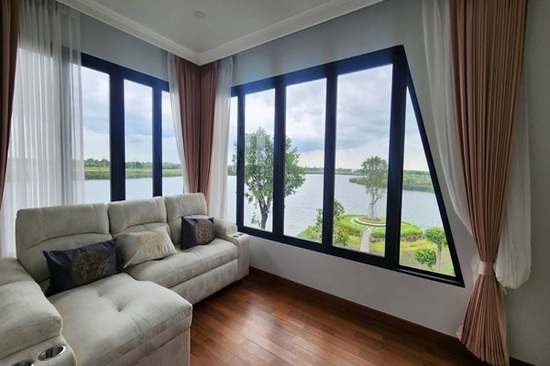 ขายบ้านคฤหาสน์ Pool Villaติดทะเลสาบ เนื้อที่ 3ไร่ พื้นที่ใช้สอย 1,000ตร.ม 4ห้องนอน 6ห้องน้ำ 3 นั่งเล่น + 2 โถงรับแขก + 1 ห้องพระ 1 ห้องครัว + 1 ห้องรับประทานอาหาร 1 ห้องทำงาน + 1 สำนักงาน + 1 รับแขก 2 ห้องเก็บของ + 2 ห้องแม่บ้าน (ห้องน้ำในตัว) 1 ห้องซักล้าง + 2 โรงจอดรถ 7 คัน ด้านหน้า Style Contempory ติดถนน ด้านหลัง Style Modern ติดทะเลสาบ ด้านนอก : สวน น้ำตก สระว่ายน้ำ ลานกิจกรรมริมทะเลสาบ ถนนไทรน้อย นนทบุรี ราคาขาย 88 ล้านบาท