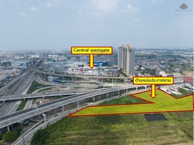 ที่ดินติดถนน 2 ด้าน รัตนาธิเบศร์ กาญจนาภิเษก ตรงข้ามเซ็นทรัลเวสเกต! 8 ไร่เศษ ราคาดี! ใกล้ตลาด บางใหญ่ เหมาะลงทุนกิจการ ซื้อเก็บเกร็งกำไร
