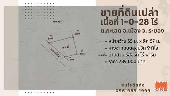 [ ขายด่วน ] ที่ดินเปล่า เนื้อที่ 1-0-28.3 ไร่ ต.กระเฉด อ.เมืองระยอง จ.ระยอง