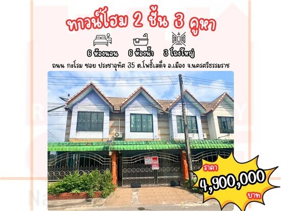 ทาวน์โฮม 2 ชั้น 3 คูหา โอกาสลงทุนสุดคุ้ม 6 ห้องนอน 6 ห้องน้ำ 3 โถงใหญ่