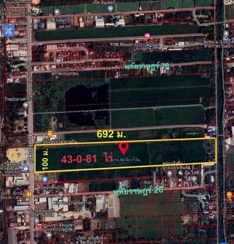 ติดถนนหทัยราษฎร์ เขตคลองสามวา ขนาด 43ไร่ 81 ตรว. ระหว่างซอยหทัยราษฎร์ 26 และ 28