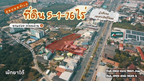 ที่ดินพัทยา ติดถนนสุขุมวิท 5 ไร่ 1 งาน 76 ตารางวา ใกล้หาดจอมเทียน ราคานี้หาที่ไหนไม่ได้อีกแล้ว