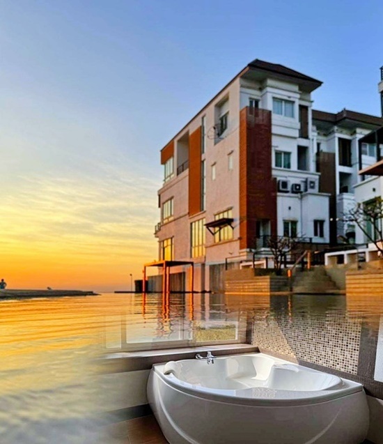 บางพระ ศรีราชา ชายหาดส่วนตัว 32ตร.วา.ให้เช่าคฤหาสน์แนวตั้ง 4 ชั้น ติดทะเลบางแสน 4นอน 482ตร.ม. 6น้ำ ตลาดหนองมน 5.2 กม.