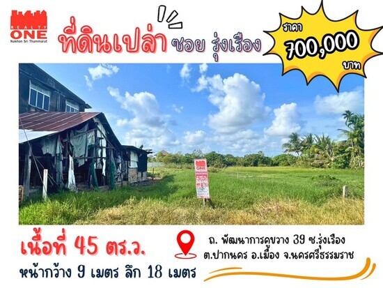 ที่ดินเปล่าโซนในเมือง ลงทุนง่าย กำไรพุ่ง ซอยรุ่งเรือง ต.ปากนคร อ.เมือง นครศรีธรรมราช