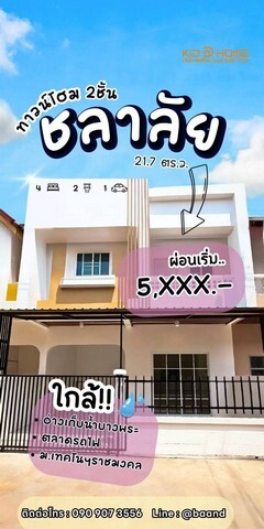 KDH0052 ขายทาวน์โฮม ชลาลัย บางพระ ขนาด 21.7 ตร.วา ทาวน์โฮม 4 ห้องนอน