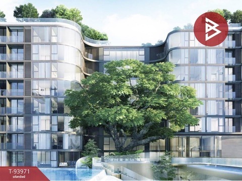 คอนโดสูง 8 ชั้น มีความโค้งเว้า เข้ากับวิวสระว่ายน้ำและต้นไม้