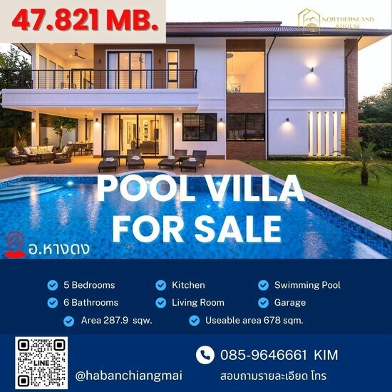 Luxury Pool Villa 47.821 ลบ. #กาดฝรั่ง #หางดง พูลวิลล่าสุดหรู 2 ชั้น #เฟอร์นิเจอร์ครบทั้งหลัง บรรยากาศดี เงียบสงบ บ้านโปร่ง โล่ง #หิ้วกระเป๋าพร้อมเข้าอยู่ได้เลย ห่างจาก #สนามบิน เพียง 15 นาที