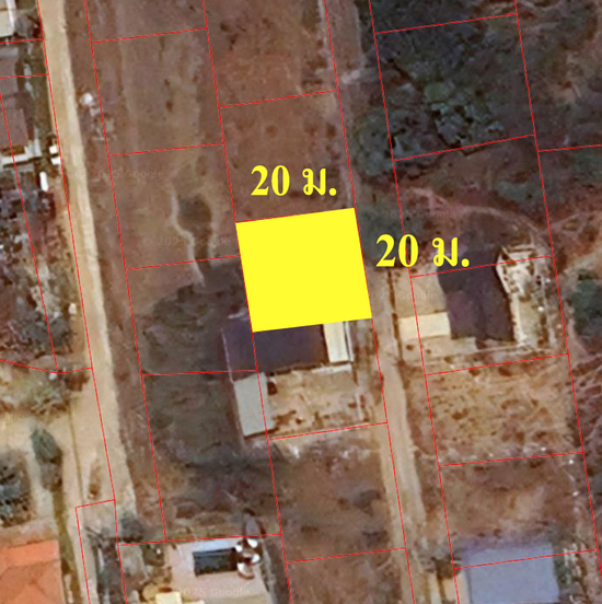 - ที่ดินเปล่า เนื้อที่ 100 ตรว. หน้ากว้าง 20 เมตร ลึก 20 เมตร