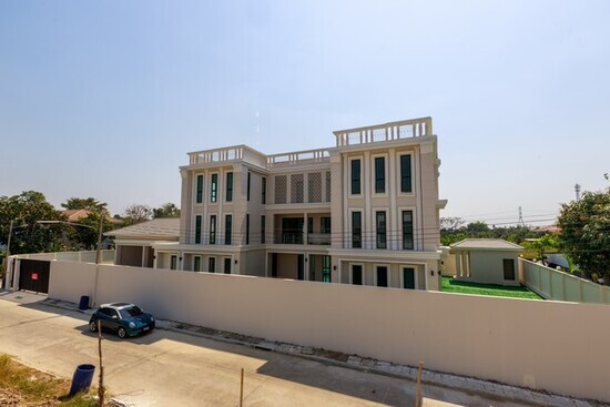 -3 ห้องรับแขก, 5 ห้องน้ำ, ห้องฟิตเนส, ห้องเก็บของ, ห้องแม่บ้าน, โรงจอดรถ 4 คัน