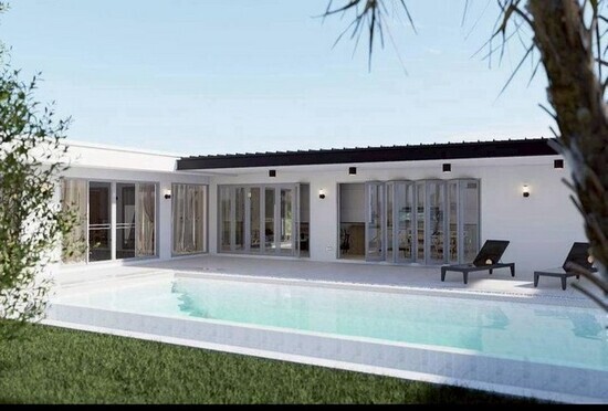 บ้านเดี่ยวชั้นเดียว ออกแบบ #สไตล์โมเดิร์นทรอปิคอล พร้อมสระว่ายน้ำส่วนตัว