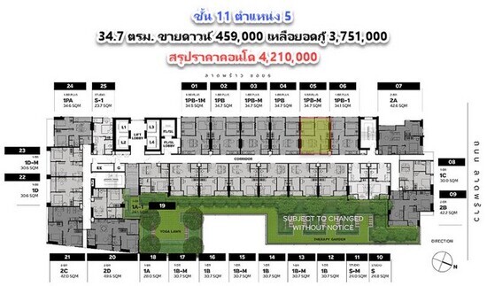 ขายดาวน์ คอนโด Metris District Ladprao 34.7 ตรม. ชั้น 11 ตำแหน่ง 05