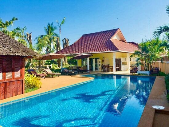 บ้านพักอาศัยหลังใหญ่ บนพื้นที่ดินขนาด 545 ตารางวา (2,180 ตารางเมตร) มาพร้อมสระว่ายน้ำส่วนตัว และอ่างจากุชชี่กลางแจ้งขนาดใหญ่ อุณหภูมิ 36°C