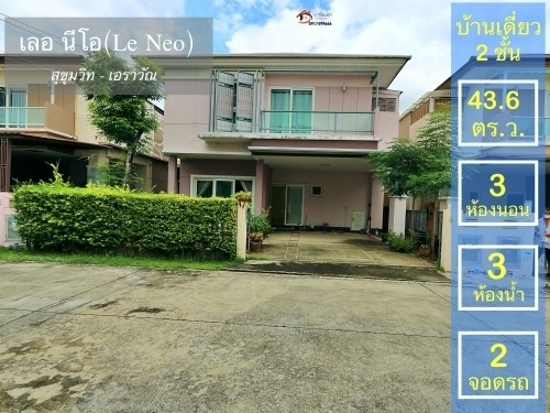บ้านเดี่ยว 2 ชั้น โครงการหมู่บ้านเลอ นีโอ สุขุมวิท เอราวัณ (Le Neo Sukhumvit Erawan) ถนนสุขุมวิท ซอย13 เชื่อมต่อถนนเทพารักษ์ ถนนศรีนครินทร์ สำโรง สภาพบ้านใหม่ ซื้อมาไม่เคยเข้าอยู่ แอร์ ผ้าม่าน ทั้งหลังพร้อมเข้าอยู่ สภาพดี ไม่ต้องปรับปรุง มาตราฐานการปลูกสร้างคุณภาพสูง เป็นโครงการที่อยู่ในชุมชนความเจริญสูง
