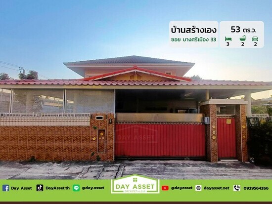 ขายบ้านเดี่ยว 2 ชั้น สร้างเอง ซอยบางศรีเมือง 33 (ท่าน้ำบางศรีเมือง) แถม แอร์/ชุดโต๊ะกินข้าว/โซฟา/เตียงนอน ใกล้รถไฟฟ้าสายสีม่วง เนื้อที่ 53 ตร.ว. ขายเพียง 4,500,000 ล้านบาท