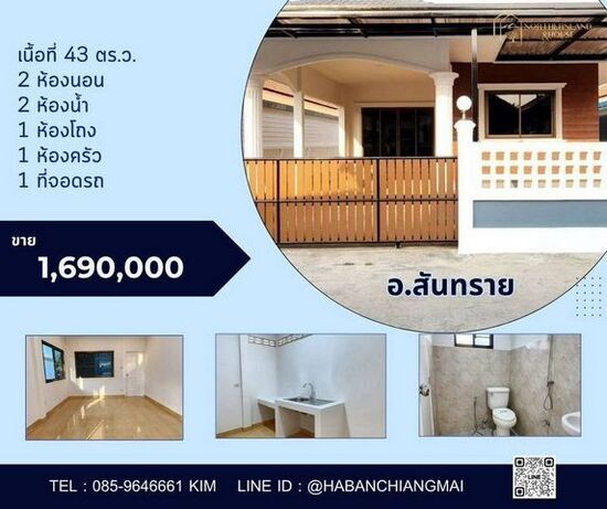 บ้านสวยราคาดี #โซนสันทราย ขายเพียง 1.69 ล.เท่านั้น 43 ตรว. บ้านเดี่ยวชั้นเดียว #ใกล้โรงพยาบาลสันทราย เดินทางสะดวก สาธารณูปโภคครบครัน