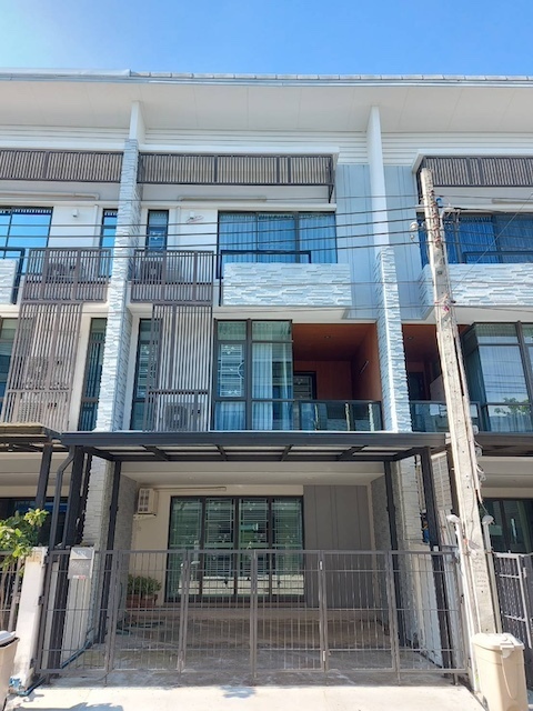 Modern 3-storey townhome for rent at Plex Bangna KM.5, next to Bangna-Trad Road and close to Mega Bangna. Spacious layout with parking for 2 cars, partly furnished.