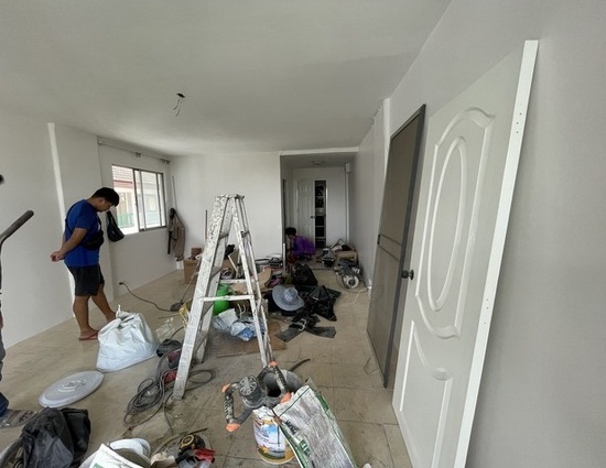 - *** ช่างกำลังเก็บงานสีและปูกระเบื้องห้องน้ำให้ใหม่