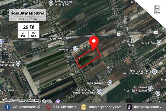 ขายที่ดินเปล่าคลองขวาง ปทุมฯ-บางเลน เนื้อที่ 29 ไร่ 2 งาน 90 ตารางวา (DD002075)