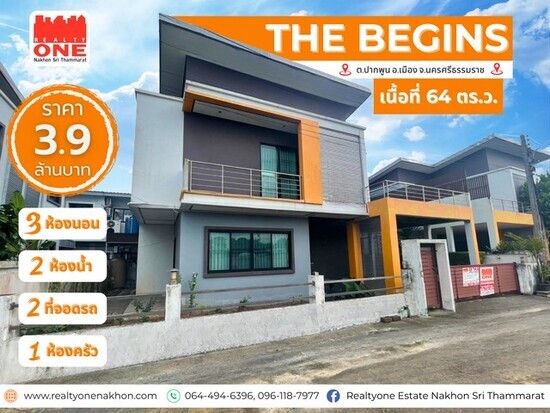The Begins บ้านเดี่ยว 2 ชั้น เนื้อที่ 62.4 ตารางวา ทำเลเมืองนครศรีฯ