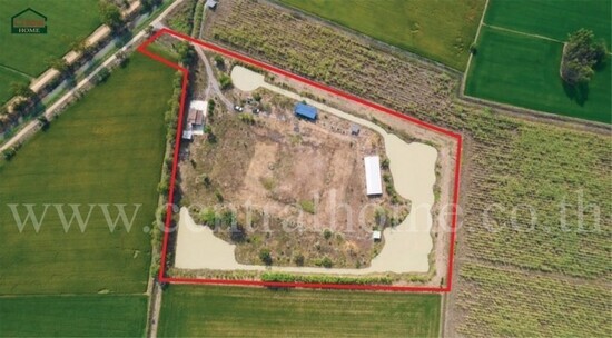 - แปลงที่ดิน สี่เหลี่ยมคางหมู หน้ากว้างติดถนน ลึก 85 เมตร และใกล้คลองส่งน้ำ 11 ไร่ 10 ตารางวา