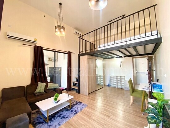 - คอนโด 2 ชั้น เพดานสูง 4.2 เมตร 1 ห้องนอน Duplex, 1 ห้องน้ำ, 1 ห้องนั่งเล่น, 1 ห้องครัว, 1 ที่จอดรถ