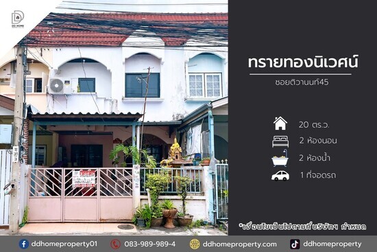 ขายหมู่บ้านทรายทองนิเวศน์ ซอยติวานนท์45 ถนนเมน (DD002112)