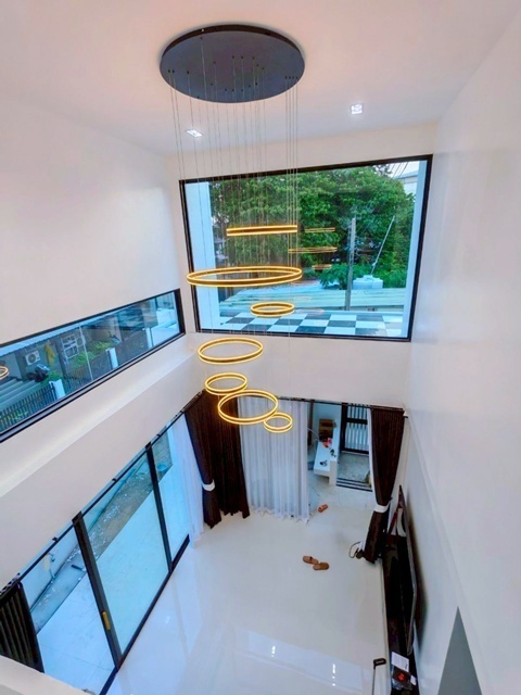 The Scene Town in Town 600 meters from Ekkamai-Thonglor SISB International School 1.8 km. MRT Ramkhamhaeng 1.7km. 5 bed Luxury 3-story corner house for rent 42sq.wa. 312q.m. 178,999B-M. away Newly built modern design black and white theme fully furnished built-in furniture 3 bath Garden view quiet location for sale at 24.9 million baht