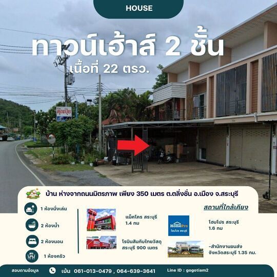 300 เมตร ใกล้ โรบินสัน ไลฟ์สไตล์ สระบุรี เพียง 900 เมตร ตำบลตลิ่งชัน อำเภอเมืองสระบุรี จังหวัดสระบุรี