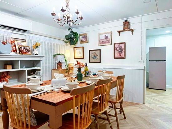 - โต๊ะทานอาหารขนาดใหญ่ และชุดจานชามครบครัน