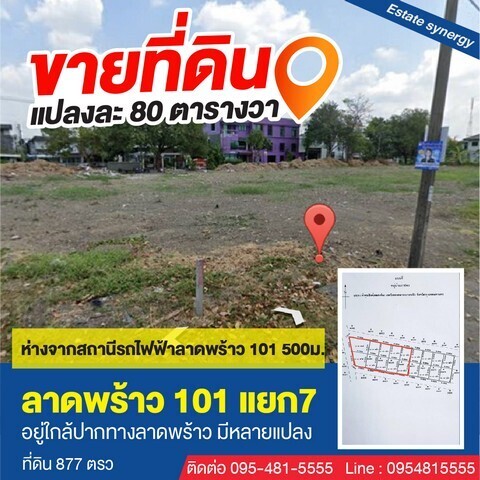 ขายที่ดินลาดพร้าว 101 แยก7 ที่ดินสวย ทำเลดี ขนาด 317 ตารางวา