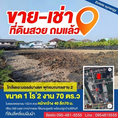 ขายหรือเช่า ที่ดินสวย ทำเลดี ใกล้เดอะมอลล์บางแค 1 ไร่ 2 งาน 70 ตารางวา