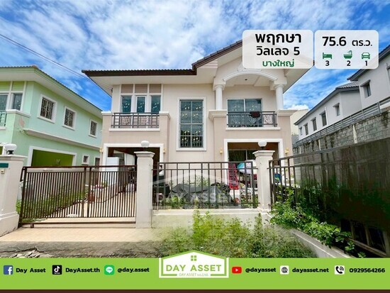 ขายบ้านเดี่ยว 2 ชั้น หมู่บ้านพฤกษาวิลเลจ 5 บางใหญ่ พร้อมพื้นที่ใช้สอยทั้งในและรอบตัวบ้าน เนื้อที่ 75.6 ตร.ว. ขายเพียง 3,390,000 ล้านบาท