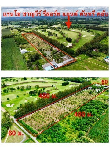 หน้ากว้างติดถนน 60 เมตร ลึก 430 เมตร ติดสนามกอล์ฟ Rancho Charnvee Golf บรรยากาศดี อากาศดี มีสระน้ำในแปลงที่ดิน