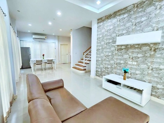 MRT Sri Dan 900m. MRT Samrong 2.79km. 2-story house for rent furnished 25,999 B-M. 36 sq.wa. 145 sq.m. 3.0 km. to Thai-Singapore International School 3 bed 2 bath Soi Sukhumvit 111-115 JAZZ Urban Srinakarin 1.3 km. to shopping areas on Sukhumvit Road. Srinakarin Bangna-Trad Expressway