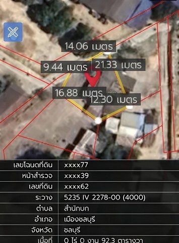 ขายที่ดินสำนักบกชลบุรี ขายที่ดินแหล่งความเจริญเมืองชลบุรี ที่ดิน 92 ตารางวา สำนักบกเมืองชลบุรี