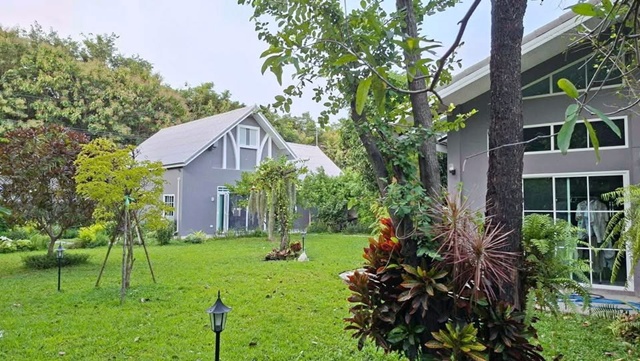Nikhom Gateway intersection Wat Kutchi 100 m. for rent luxurious single-story house large house 101sq.wa. 301sq.m. quiet atmosphere shady 2bed 3bath 17,998B-M. fully furnished electrical appliances convenient parking suitable for a retirement home One Night Gateway Market 2.1 km. Phanom Sarakham - Paet Riu