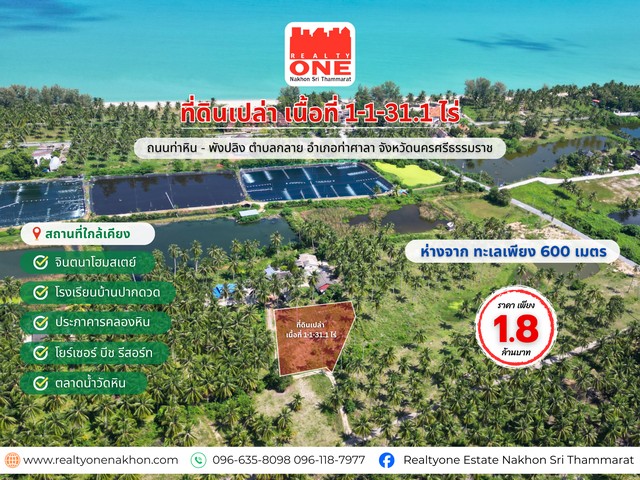 ที่ดินเปล่า 1-1-31.1 ไร่ _ ห่างทะเลเพียง 600 เมตร