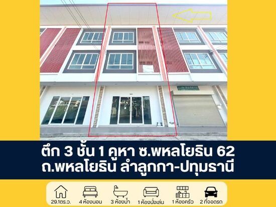 ตึก 3 ชั้น 1 ห้อง ซอยพหลโยธิน 62 ถนนพหลโยธิน ปทุมธานี ราคาพิเศษ ขายต่ำกว่าราคาประเมินธนาคาร