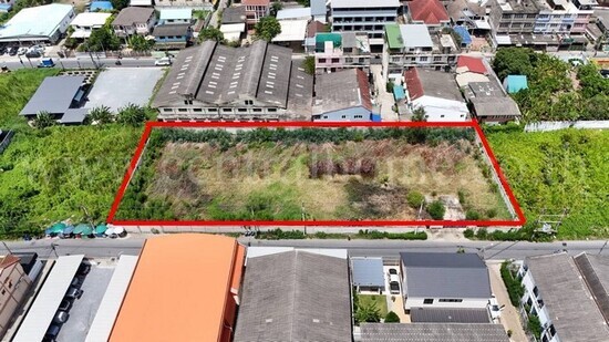 - ที่ดินเป็นรูปสี่เหลี่ยมผืนผ้า ถนนหน้ากว้าง 6 เมตร สิบล้อผ่านได้