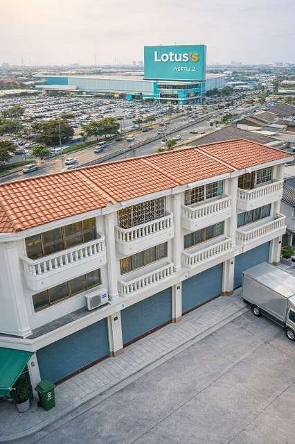 อาคารให้เช่า 3.5 ชั้น 3 นอน ใกล้โลตัส พระราม 2 800 ม. เทียนทะเล12-18 แสมดำ และ บิ๊กซี พระราม 2 16 ตร.วา. 220 ตร.ม. ตลาดบางขุนเทียน 1.9 กม.