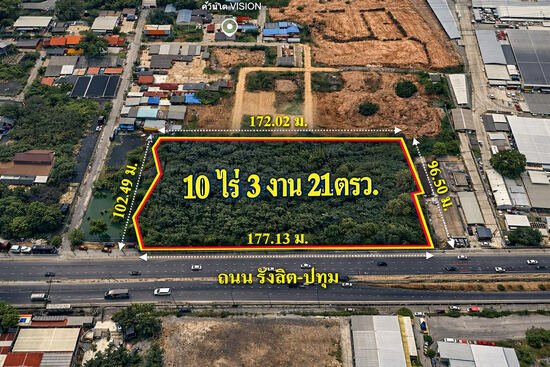 ขายที่ดินติดถนน รังสิต ปทุมธานี 10 ไร่ 3 งาน 21 ตารางวา
